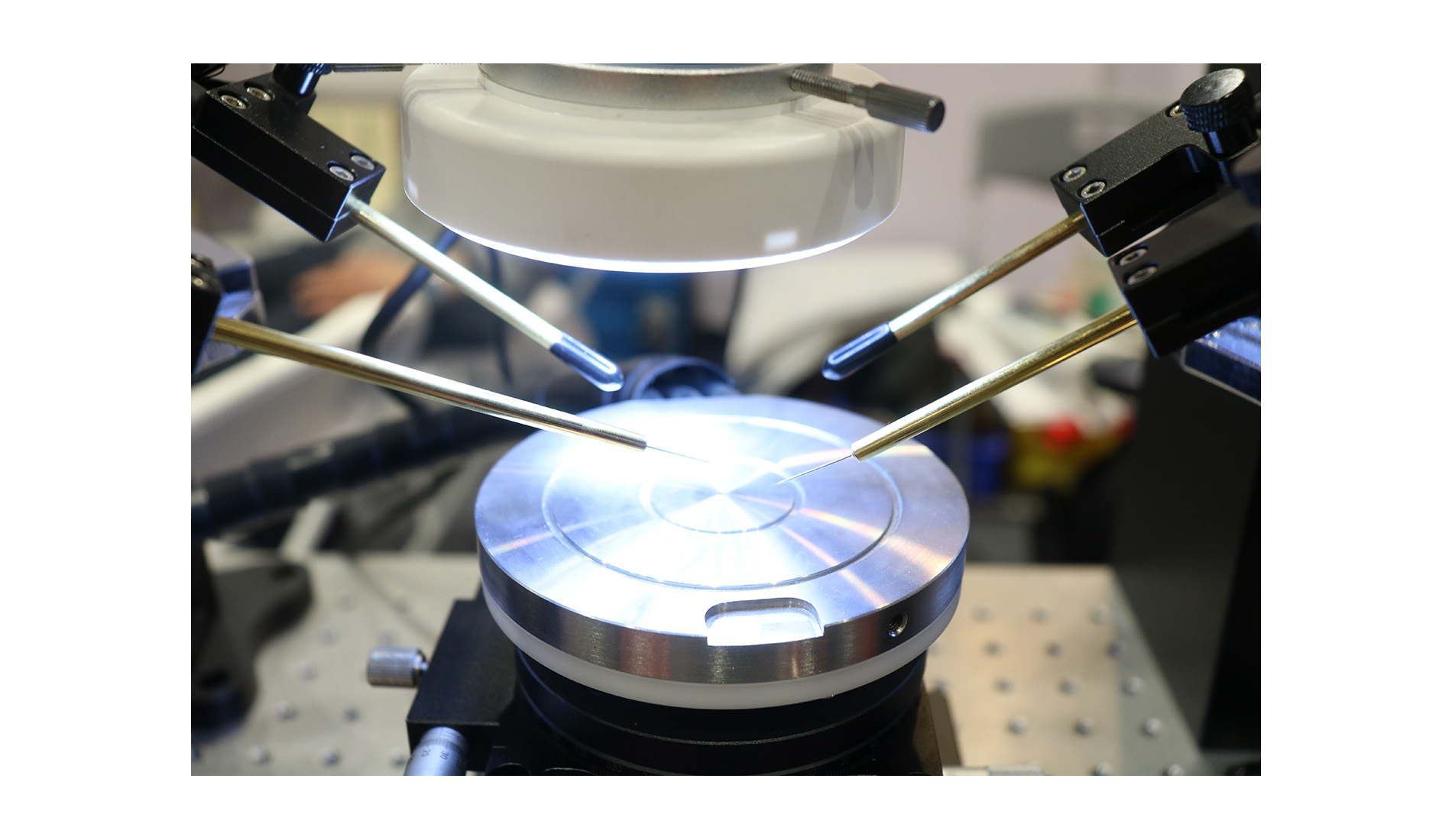 探針作為探針臺(tái)的核心部件之一,主要用途是接觸連接待測件電極,為半導(dǎo)體芯片的電參數(shù)測試提供一個(gè)導(dǎo)通條件,從不同應(yīng)用場景可分為鎢鋼探針,鎢鋼鍍金探針,鍍金軟針,鎢鋼角度探針等,被廣泛應(yīng)用于半導(dǎo)體及光電等行業(yè)的測試。在探測過程中,半導(dǎo)體探針被當(dāng)做一個(gè)電流源,將電流引入待測材料,然后從待測材料的另一側(cè)將電流采集回來。通過這種方式,可以探測到待測材料中的電學(xué)現(xiàn)象,進(jìn)而分析材料的電學(xué)特性參數(shù)。