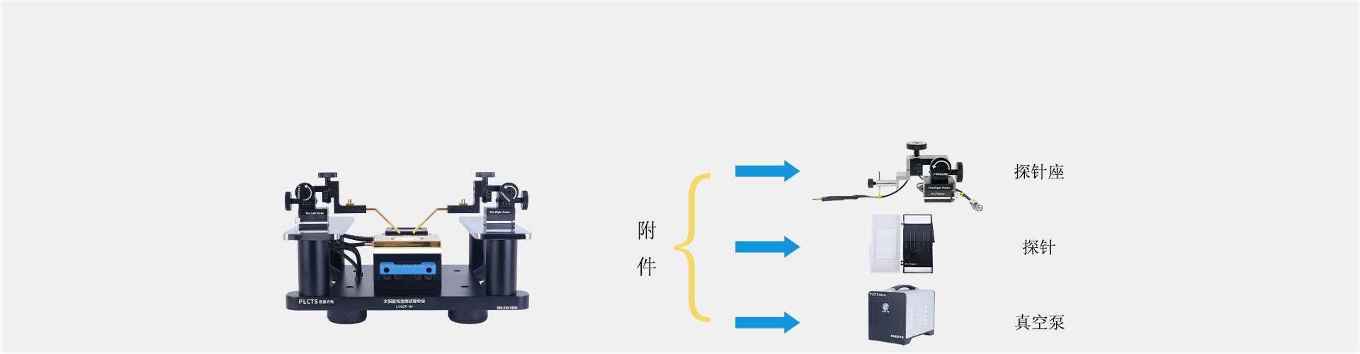 PLCTS 太陽能電池測試探針臺具有結(jié)構(gòu)小巧、集成化設(shè)計、操作簡易等特點。樣品臺采用兩種測試模塊,均有吸附功能,單獨吸附孔道設(shè)計。邊緣絕緣性處理,尤其試用鈣鈦礦疊層太陽能電池測試。如需更換探針座款式(3μm、1μm、0.7μm等)及線纜規(guī)格(三同軸線纜)可聯(lián)系客服。