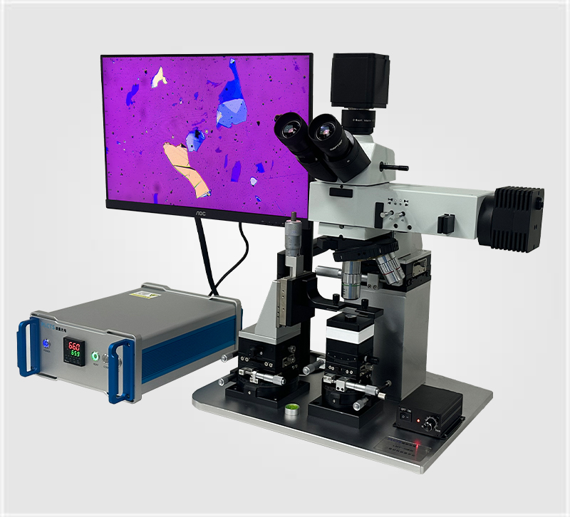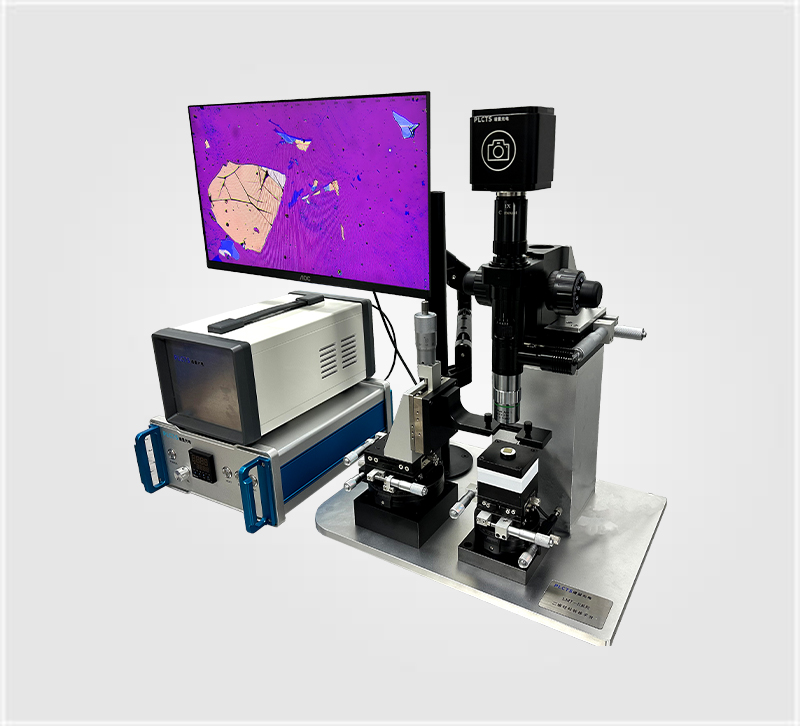 高分辨電動探針輔助二維材料轉(zhuǎn)移平臺在高分辨電動二維材料轉(zhuǎn)移平臺基礎(chǔ)上增加了探針劃刻模塊,利用探針尖端的精密位移,對微觀樣品進(jìn)行切割、剝離、翻轉(zhuǎn)等手工難以完成的操作。在轉(zhuǎn)移過程中或轉(zhuǎn)移后,直接對材料進(jìn)行初步的電學(xué)性能測試,例如測量電阻、電流-電壓特性等。適用于探針劃刻、輔助金屬電極及柔性襯底上半導(dǎo)體材料干法轉(zhuǎn)移。
