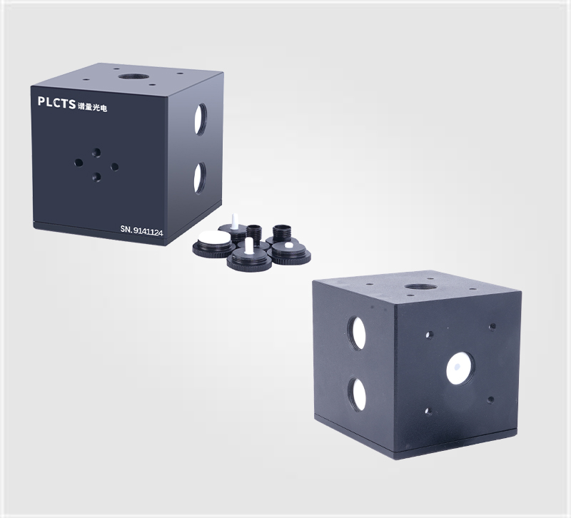 PLCTS 熒光量子效率積分球(可固定)設(shè)計L型鋁合金座,方便固定,是含L型支架一體式積分球,集成兩個SMA905標(biāo)準(zhǔn)光纖接口,輸入口和采集口。樣品臺可旋轉(zhuǎn)式設(shè)計,可以滿足不同角度測試,增加了測試準(zhǔn)確性??刹鹦抖ㄖ票壬笾Ъ?,可以同時兼容粉末、液態(tài)、薄膜樣品;夾具可以放置12.5mm×12.5mm×45 mm標(biāo)準(zhǔn)比色皿,適用于熒光量子效率測試、光致發(fā)光/吸收光譜測試;
