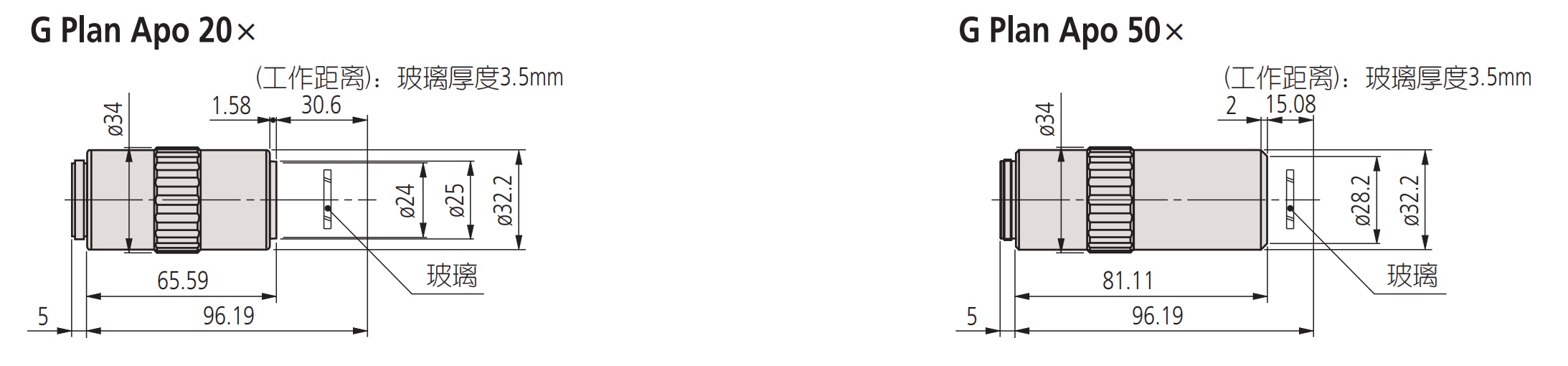 譜量光電提供Mitutoyo玻璃厚度補(bǔ)償遠(yuǎn)場(chǎng)校正物鏡非常適用于通過(guò)玻璃為一系列廣泛的亮場(chǎng)檢測(cè)顯微鏡應(yīng)用進(jìn)行成像,包括用于檢測(cè)LCD、半導(dǎo)體、平面電視屏幕,以及在真空中成像的應(yīng)用。這些G Plan APO物鏡可用于一系列廣泛的生命科學(xué)應(yīng)用,如透過(guò)蓋玻片或瓊脂、水和養(yǎng)分等介質(zhì)所進(jìn)行的成像。Mitutoyo玻璃厚度補(bǔ)償遠(yuǎn)場(chǎng)校正物鏡具有卓越的色彩重現(xiàn)性,并可確保在整個(gè)視場(chǎng)范圍內(nèi)提供平面的像面。所有標(biāo)注的放大倍率均基于200mm的筒透鏡焦距。適用于波長(zhǎng)范圍436nm - 656nm使用,物鏡安裝螺紋:M26×0.706。