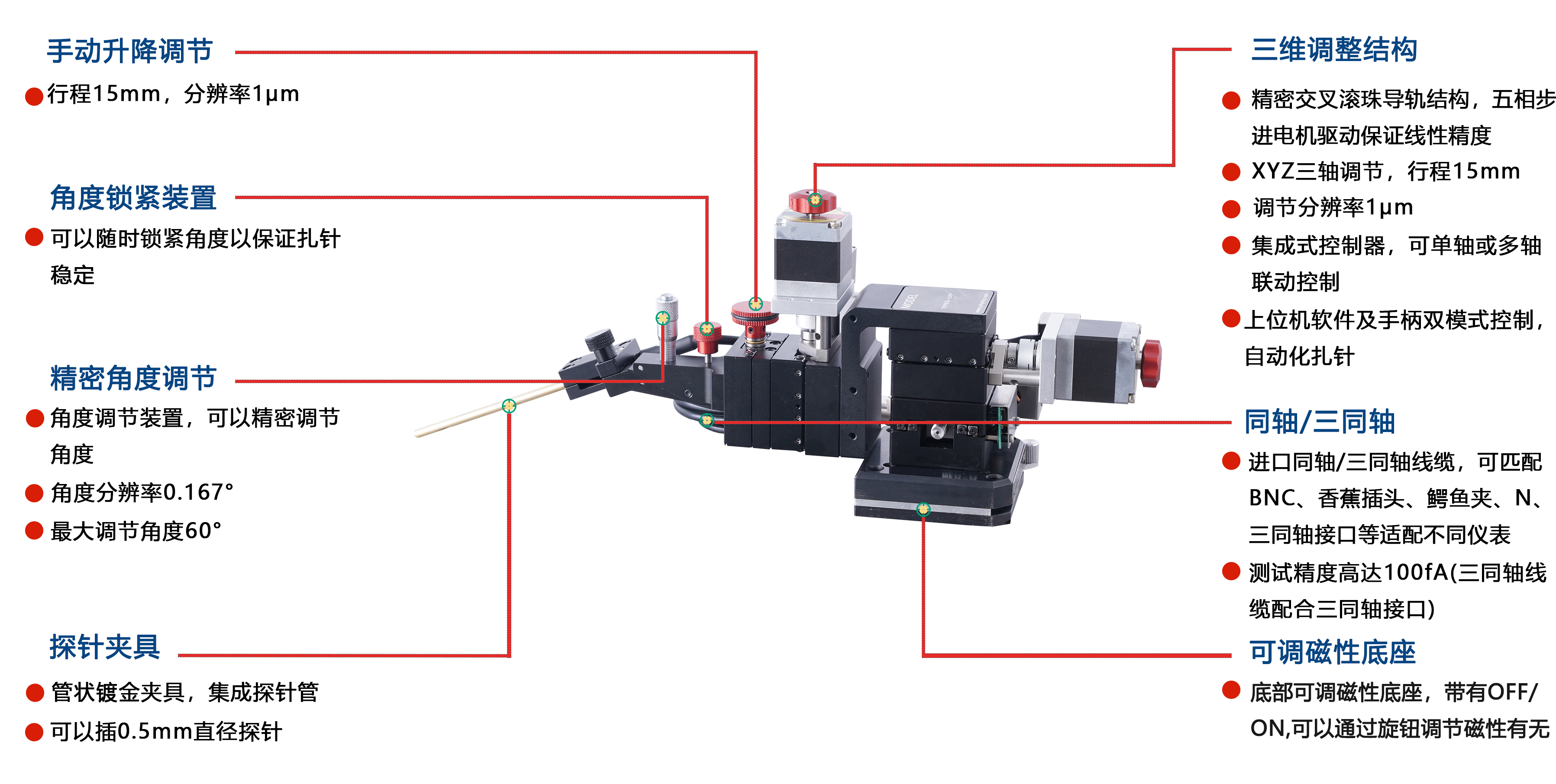 譜量光電 針對(duì)行業(yè)高精度應(yīng)用場(chǎng)景需求,新推出電動(dòng)款五相高精度探針座,低速無抖動(dòng),實(shí)現(xiàn)亞微米級(jí)定位,搭配我司多軸運(yùn)動(dòng)控制系統(tǒng)以及運(yùn)動(dòng)手輪組合,輕松實(shí)現(xiàn)單軸運(yùn)動(dòng)或多軸聯(lián)動(dòng),單個(gè)控制器最多可連接三個(gè)電動(dòng)探針座,可實(shí)現(xiàn)九個(gè)維度的精確控制。