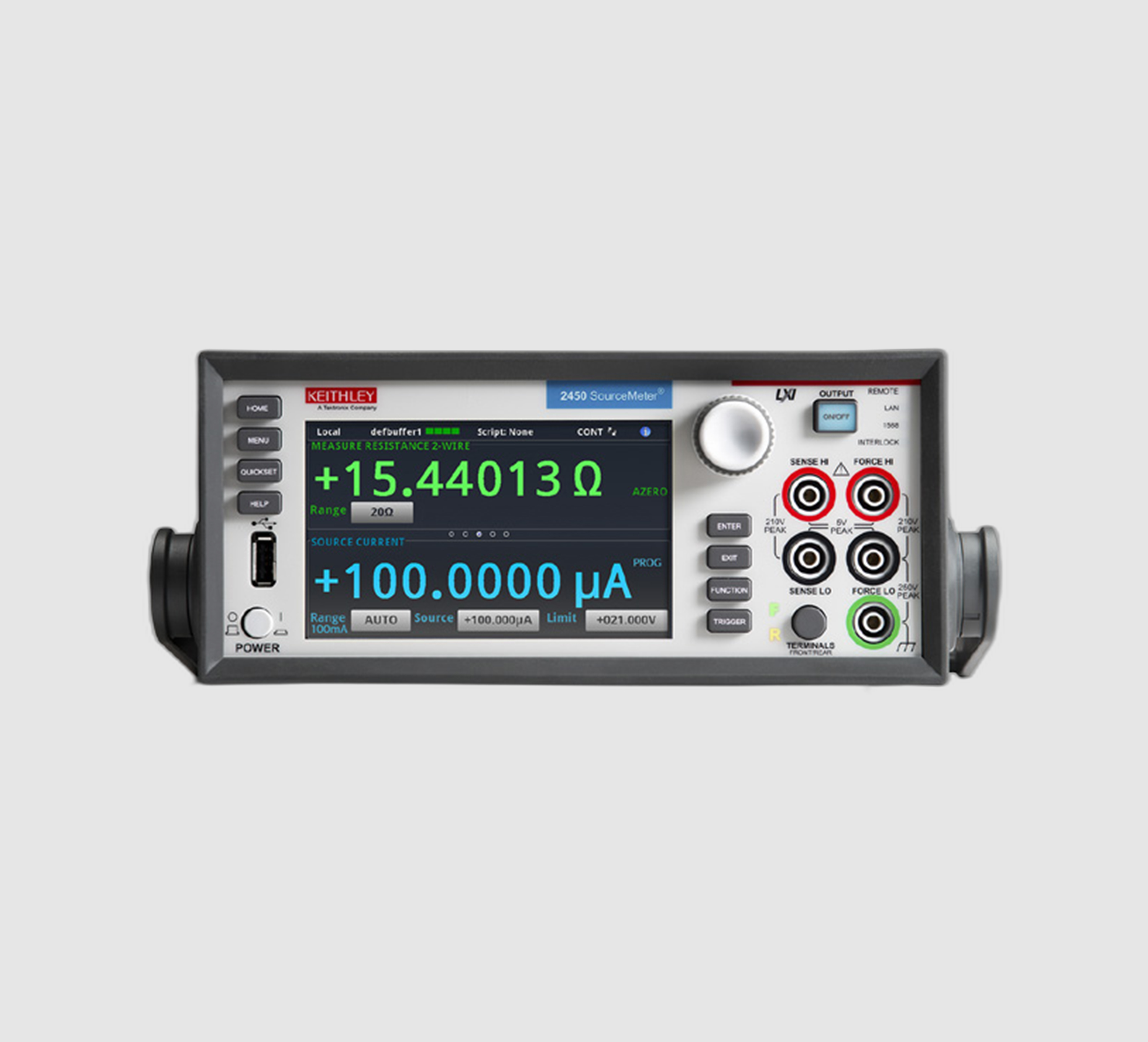 KEITHLEY 2450 廣泛應(yīng)用于離散器件、組件、FET、二極管、電阻、電池、電源管理 IC、太陽能電池、LED、納米材料、有機(jī)材料等的測試和特性分析。