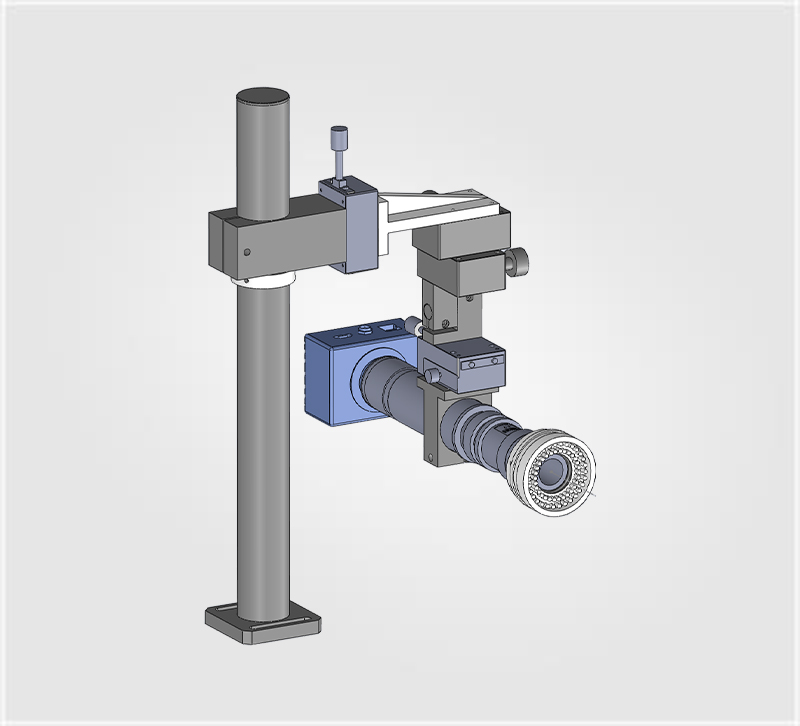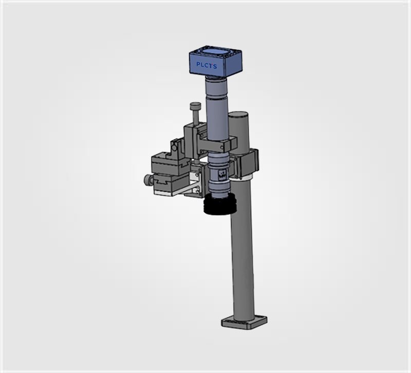 PLCTS 垂直視覺觀察系統(tǒng)整體結(jié)構(gòu)采用不銹鋼桿立柱用M6螺絲在光學(xué)平臺(tái)上任意簡(jiǎn)單固定,方便后續(xù)組裝。帶有圓形防墜扣固定在不銹鋼桿上,防止后面安裝鏡頭調(diào)節(jié)部份時(shí)墜落。顯微鏡支持XYZ四軸位移調(diào)節(jié),顯微鏡0.7~4.5X光學(xué)變倍;照明燈源采用環(huán)形光照射,綜合最大放大倍數(shù):~340倍。