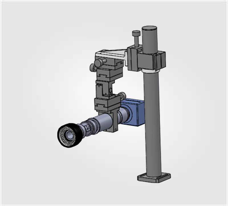 PLCTS 水平視覺觀察系統(tǒng)整體結(jié)構(gòu)采用不銹鋼桿立柱用M6螺絲在光學(xué)平臺(tái)上任意簡(jiǎn)單固定,方便后續(xù)組裝。帶有圓形防墜扣固定在不銹鋼桿上,防止后面安裝鏡頭調(diào)節(jié)部份時(shí)墜落。顯微鏡支持XYZ四軸位移調(diào)節(jié),顯微鏡0.7~4.5X光學(xué)變倍;照明燈源采用環(huán)形光照射,綜合最大放大倍數(shù):~340倍。
