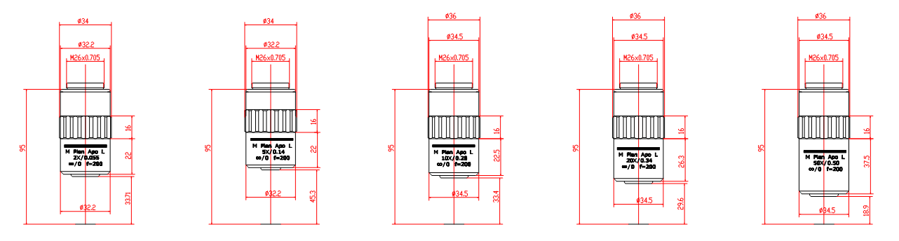 PLCTS 95 mm平場復(fù)消色差物鏡采用了先進(jìn)的光學(xué)設(shè)計和優(yōu)質(zhì)的光學(xué)材料,該物鏡能夠提供清晰、細(xì)膩、高精度的像素信息。復(fù)消色差設(shè)計則校正了紅、黃、藍(lán)三條譜線的軸向色差、像散和場曲,進(jìn)一步提高了成像質(zhì)量。放大倍率5x、20x、50x三種可選,其安裝螺紋為M26 mm×0.706 mm外螺紋.