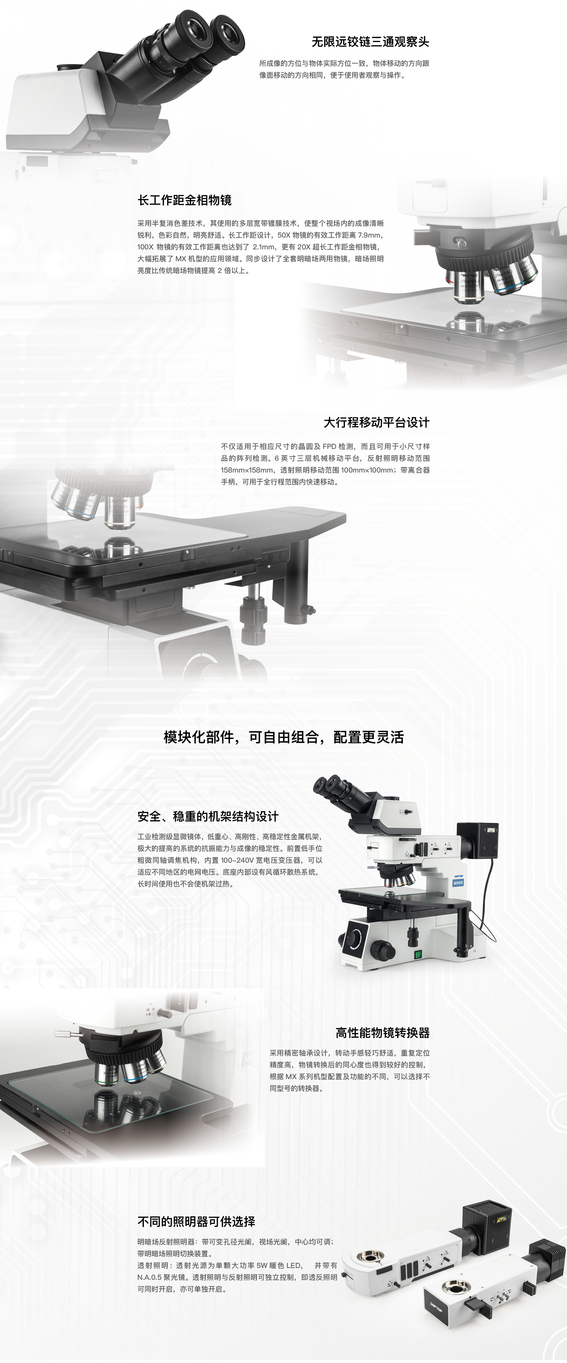 PLCTS MX6R正置金相顯微鏡涵蓋明場、暗場、斜照明、偏光、DIC微分干涉等多種觀察功能自由切換,適應(yīng)復(fù)雜檢測場景:在半導(dǎo)體檢測中,可切換至DIC模式觀察晶圓表面納米級形貌;在材料分析中,通過偏光觀察識別晶體結(jié)構(gòu),滿足多領(lǐng)域檢測需求。