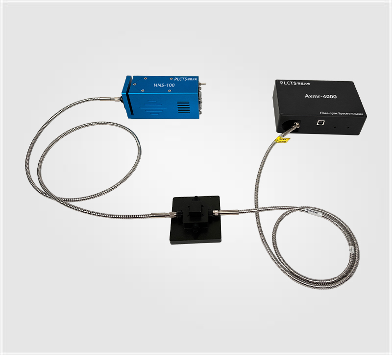 PLCTS 反射率光譜檢測(cè)系統(tǒng)由光源(HNS-100)、光譜儀(Axmr-4000)、Y型光纖、標(biāo)準(zhǔn)反射白板、反射率光纖支架組成。Y型光纖兩端分別連接光譜儀和光纖,單獨(dú)一端則固定在反射率光纖支架上,可用于測(cè)量固體和粉末樣品的反射光譜。