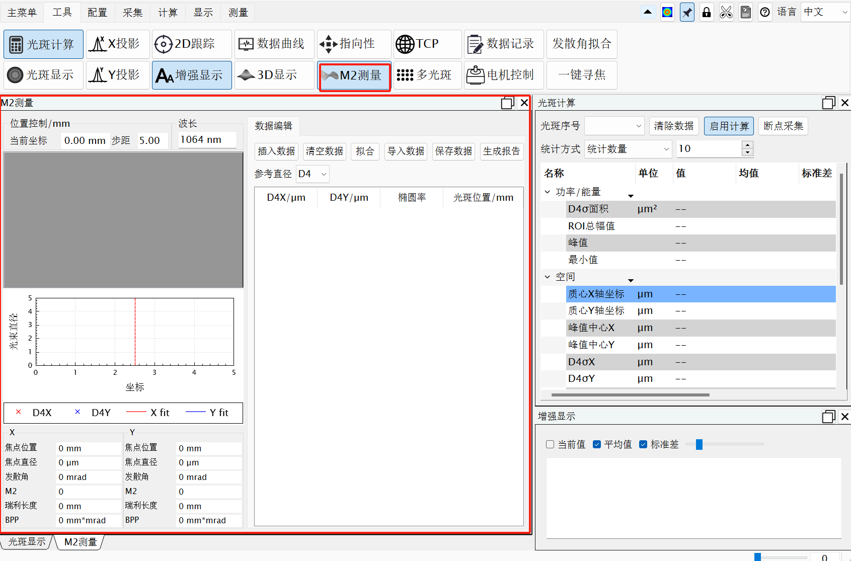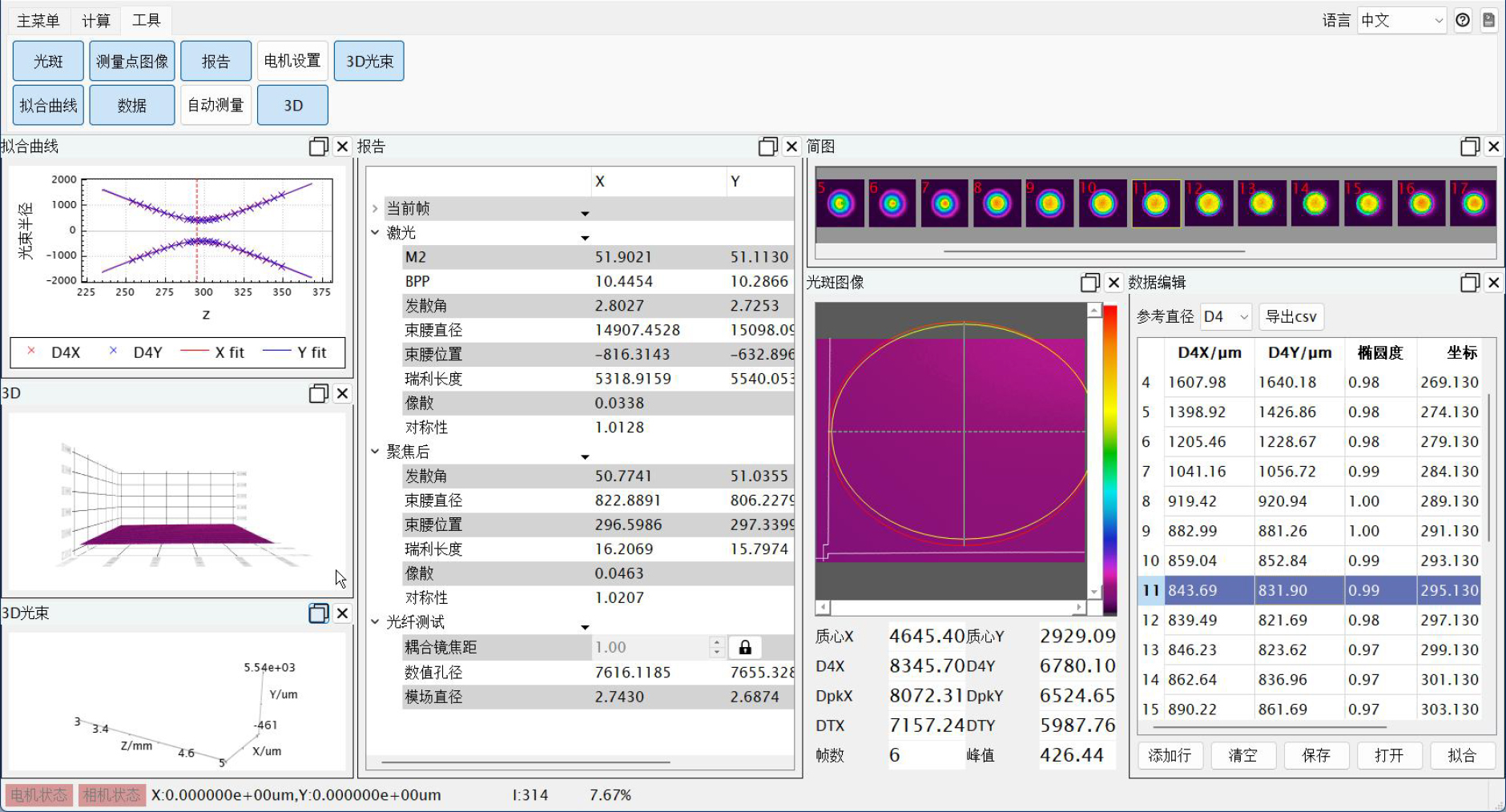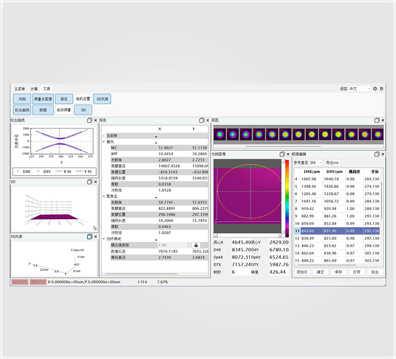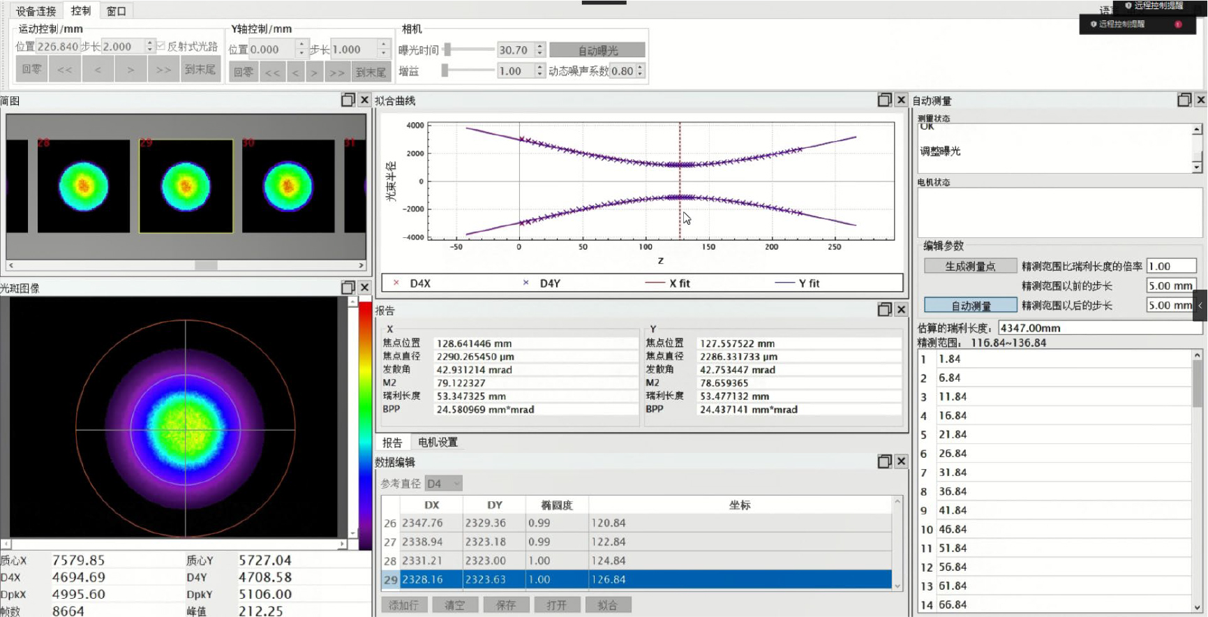 PLCTS M2測量系統(tǒng)整體準(zhǔn)確度≤5%,光譜檢測范圍340-1100nm,M2 范圍可測1-50;并且兼容脈沖和連續(xù)激光測量,軟件測試M2因子、發(fā)散角、聚焦直徑、束腰位置、瑞利長度以及其他激光光束質(zhì)量參數(shù)。