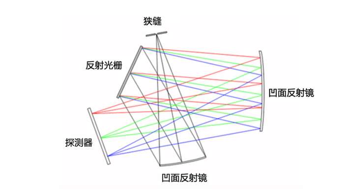 光譜儀對稱交叉Czerny-Turner光路示意圖
