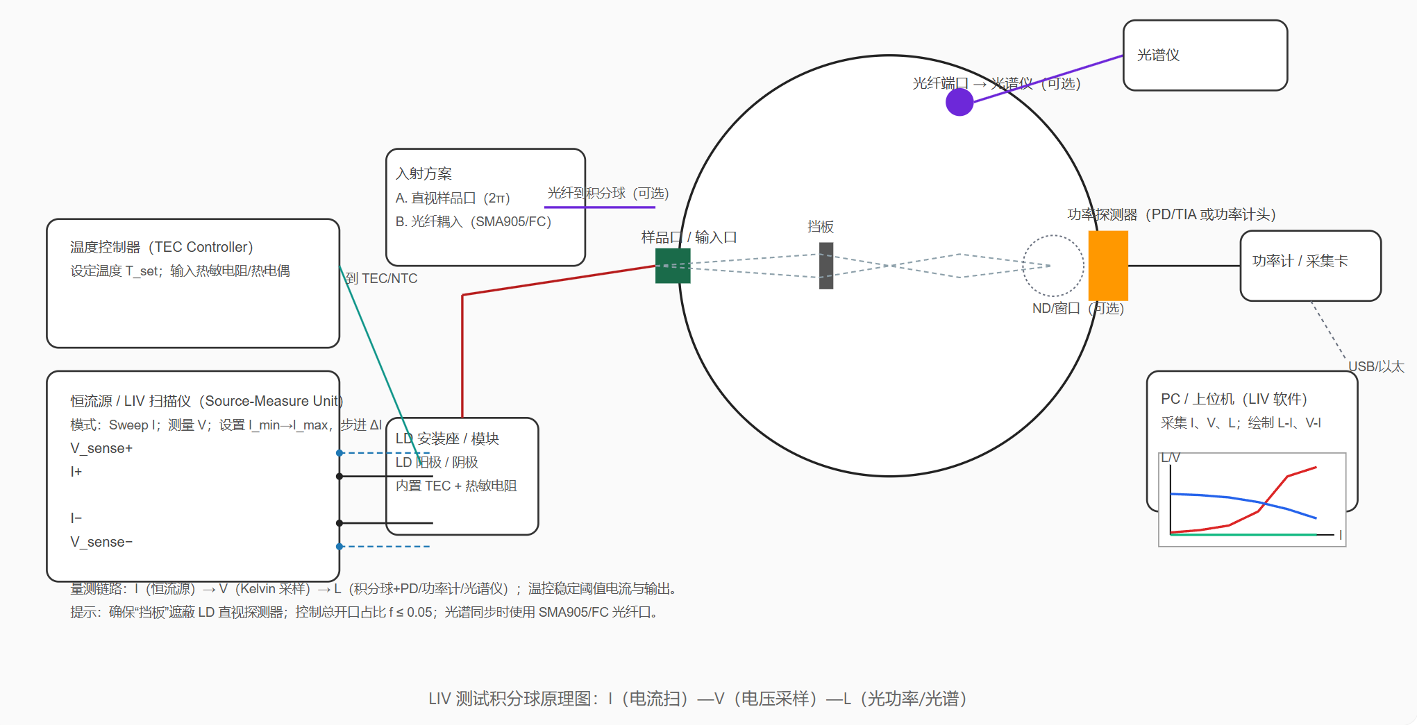 LIV測試積分球示意圖