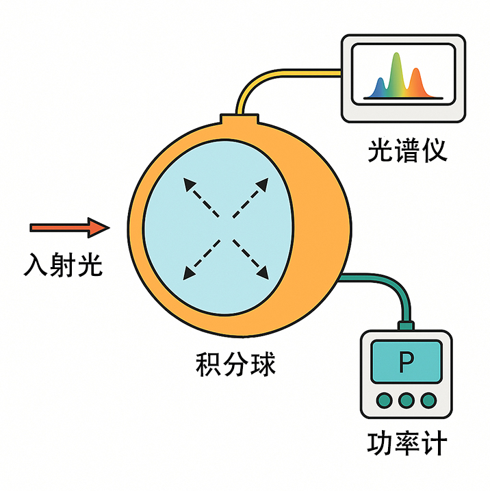 (1)功率探測器:安裝在積分球的一個端口上,通常是經(jīng)過校準(zhǔn)的硅光電二極管或InGaAs探測器(根據(jù)波長選擇),來測量分析光功率。
