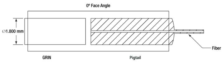 0°角和8°角GRIN透鏡插芯、光纖示意圖