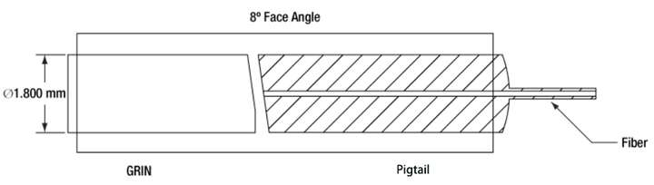 8°角GRIN透鏡和帶尾纖的插芯對準耦合示意圖