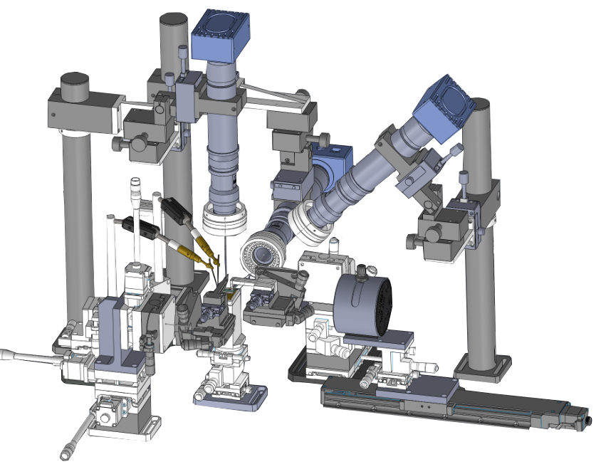 2. 光波導(dǎo)耦合系統(tǒng)(六維主動(dòng)對準(zhǔn),如圖3) | 在實(shí)時(shí)監(jiān)測輸入/輸出光功率的條件下,用納米級(jí)位移臺(tái)調(diào)整每個(gè)元件的空間位姿(X/Y/Z/俯仰/偏擺/旋轉(zhuǎn)),尋找插入損耗最低、隔離度最高的“甜點(diǎn)”。 |